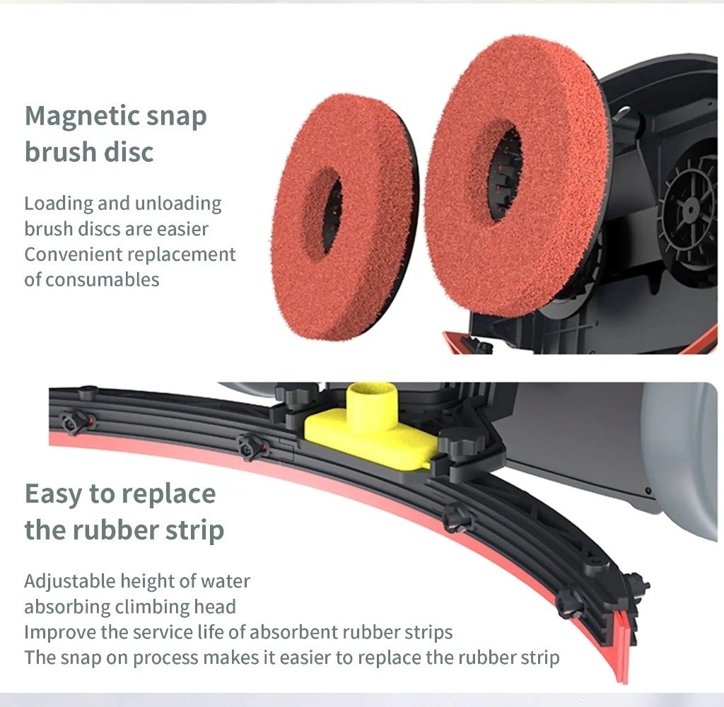 اسکرابر مینی گرین دارای دسته با طراحی ویژه است که میتواند چرخش 360 درجه دارد. ارتفاع این مدل 40 سانتیمتر است که به راحتی زیر میز را نیز نظافت نمود .