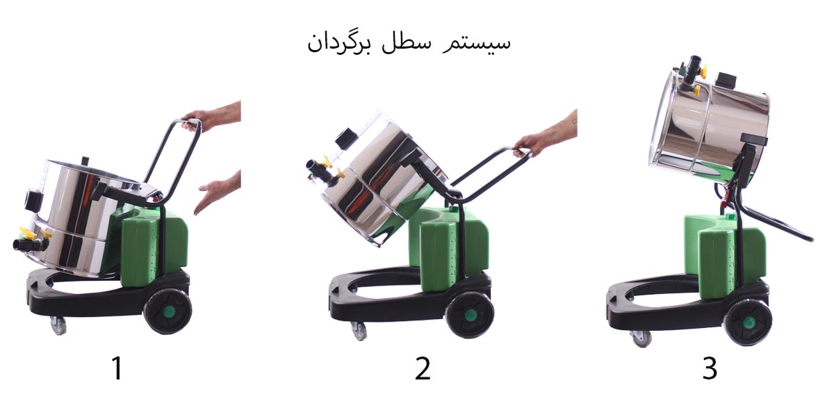 در قسمت پایین مخزن استیل یک شیر بزرگ وجود دارد که می توان به آسانی آب کثیف جمع شده را توسط آن تخلیه نمود .