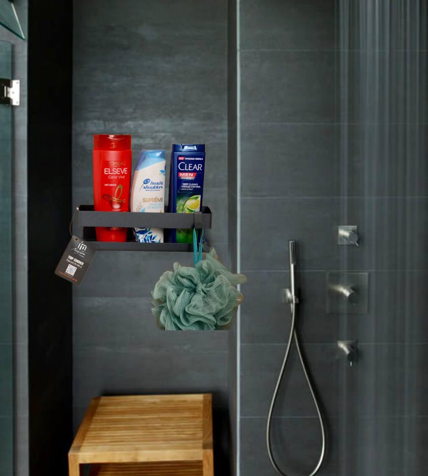 محل قرارگیری لوازم حمامIM260 از جنس استیل ضدزنگ با روکش مشکی رنگ ،مناسب برای جا شامپو و صابون مقاوم در برابر رطوبت با قابلیت نصب به دیوار ،بسیار ایده آل برای چیدمان وسایل بهداشتی در حمام منازل ، مسافرخانه ها و هتل ها میباشد.