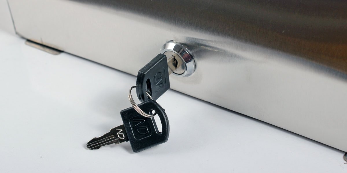 این مدل دارای قفل با کلید فلزی می باشد که از دسترسی افراد غیر مسئول جلوگیری می نماید.