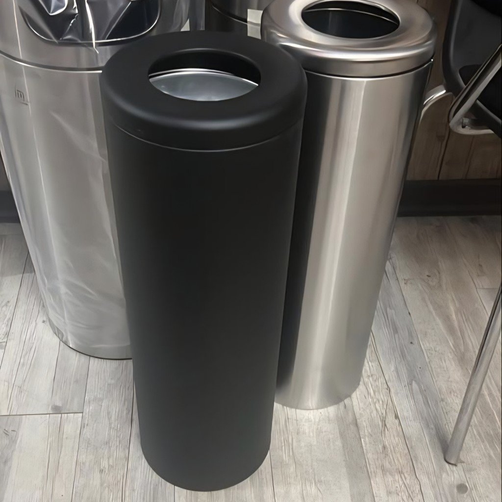 سطل استیل دریچه از بالا مناسب جهت قرارگیری در کنار سالن ها با قطر 20 و ارتفاع 70 سانتیمتر است. دارای سطل داخلی استیل